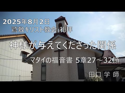 鷲敷キリスト教会2025年8月2日「神様が与えてくださった関係」 マタイの福音書5章27~32節(田口先生)
