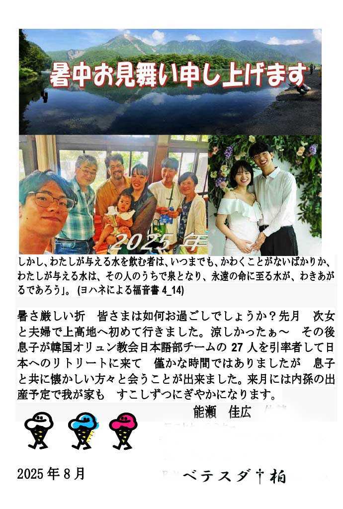 暑中お見舞い申し上げます。暑い毎日お体ご自愛下さいませ。 2025年8月8日